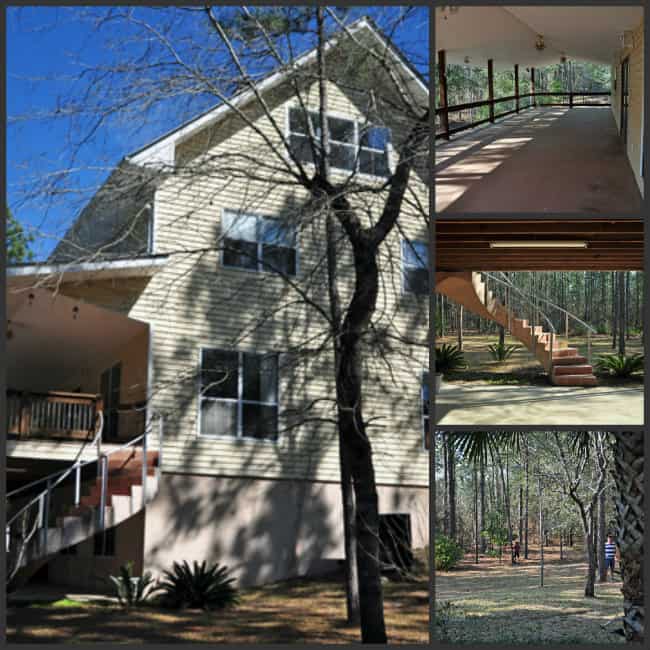 The house is situated on 27 acres of woods. Secluded and about 40 minutes from Mobile, it was our dream home. Doing all the work ourselves, we were able to have a much larger home than had we contracted the work. With almost 5,000 sq ft of living space, it has 4 floors.