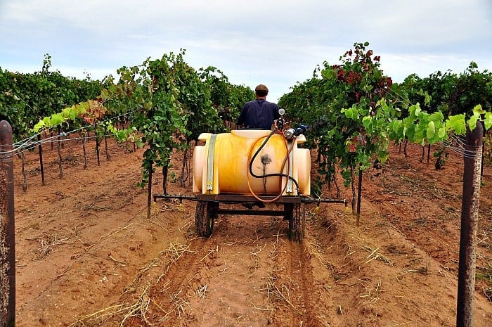 To keep the weeds under control we can spray Roundup. But, since this can also kill vines, we like to minimize our use of it. So, that brings us to our latest activity…